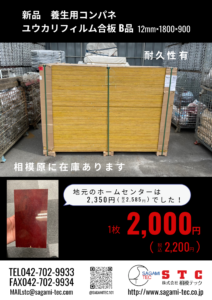 養生用コンパネ ユウカリフィルム合板B品 12mm×1800×900